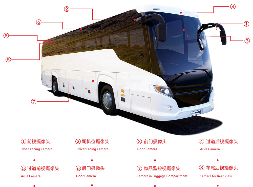 4)過道前視攝像頭:無死角監控、防止車內扒手;